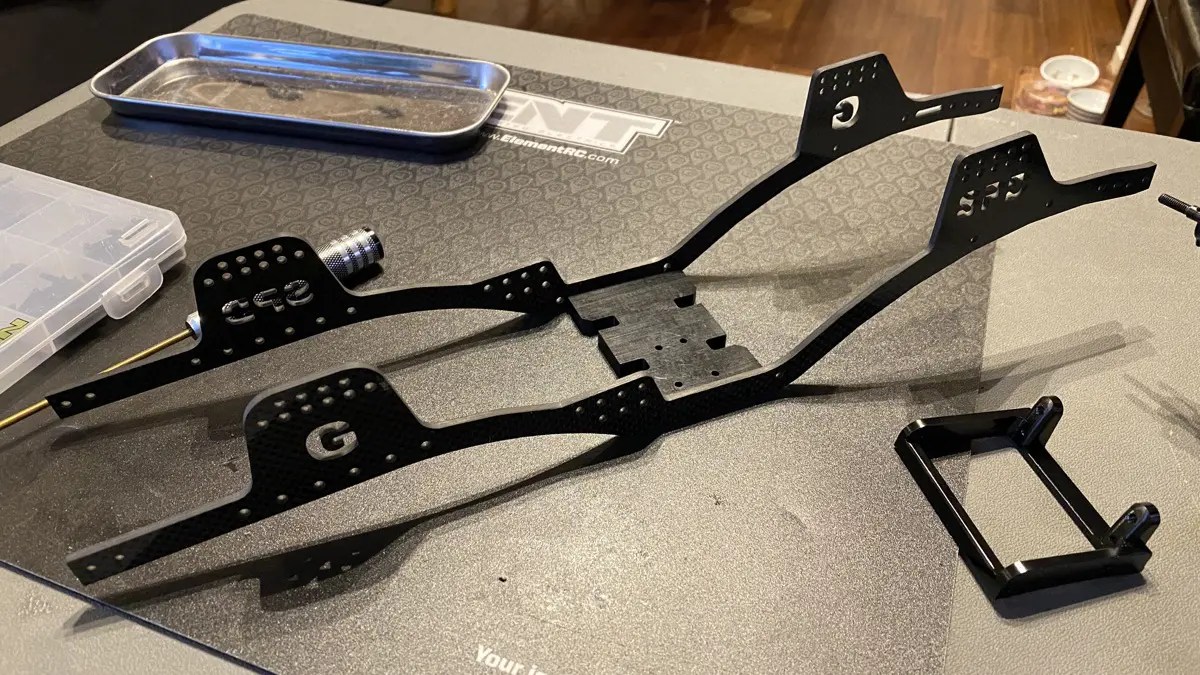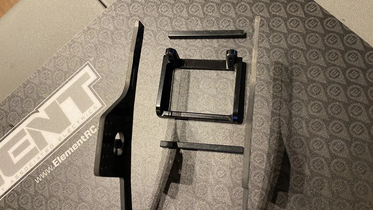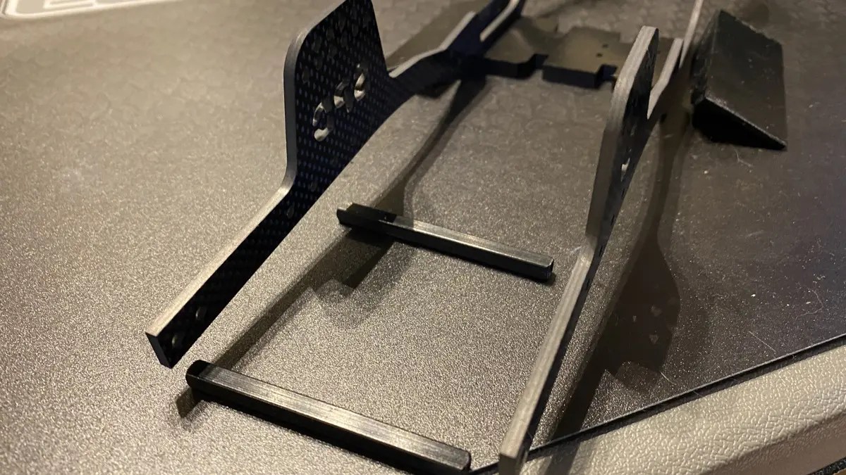 こんな感じでスキッドを固定して、サーボマウント付けて、スペーサー付けて、シャーシ自体は組立完了します。