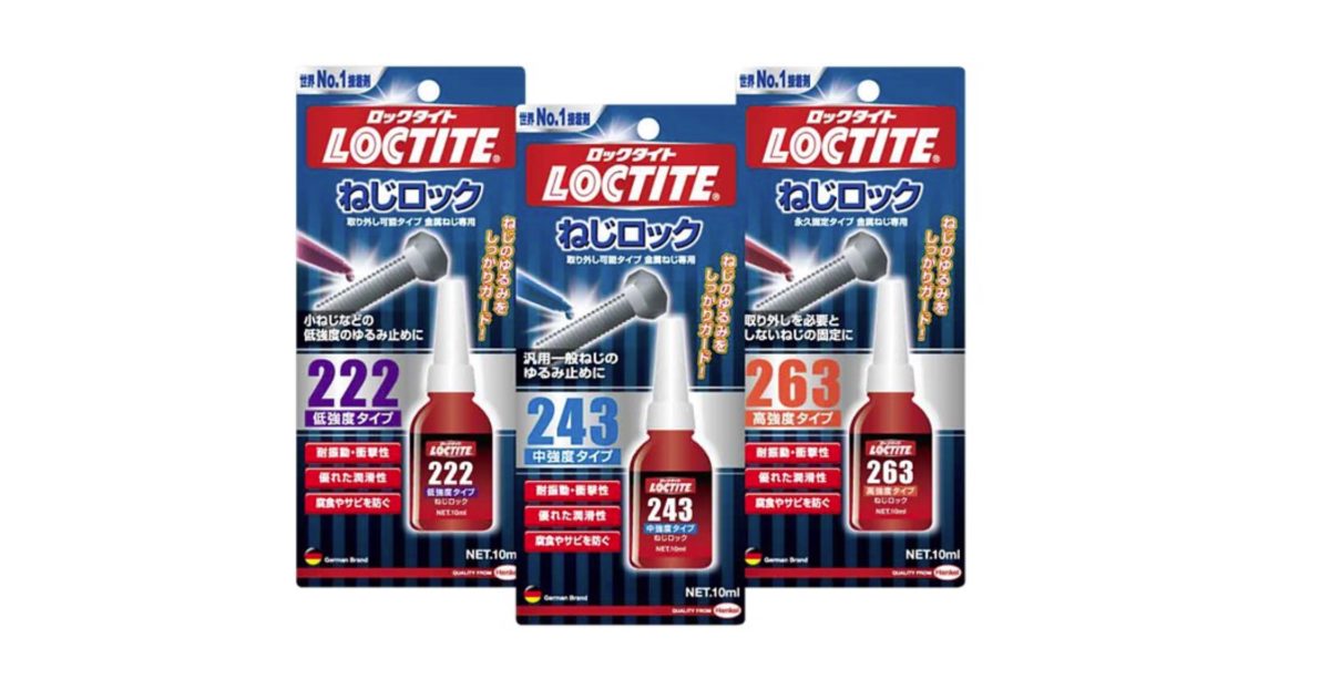 とはいっても、ねじロック剤なんでどこの物使ったって同じだと思うので、ロックタイトの243を1つ持っておくのが安心かなと感じています。