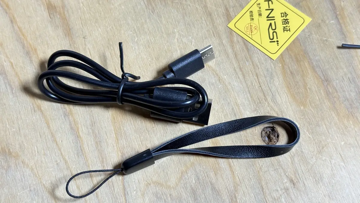 本体はUSB充電式なので、ケーブルとハンドストラップ。
