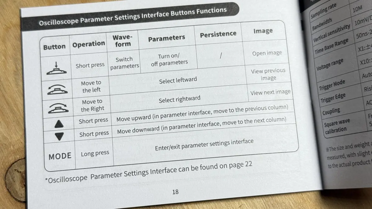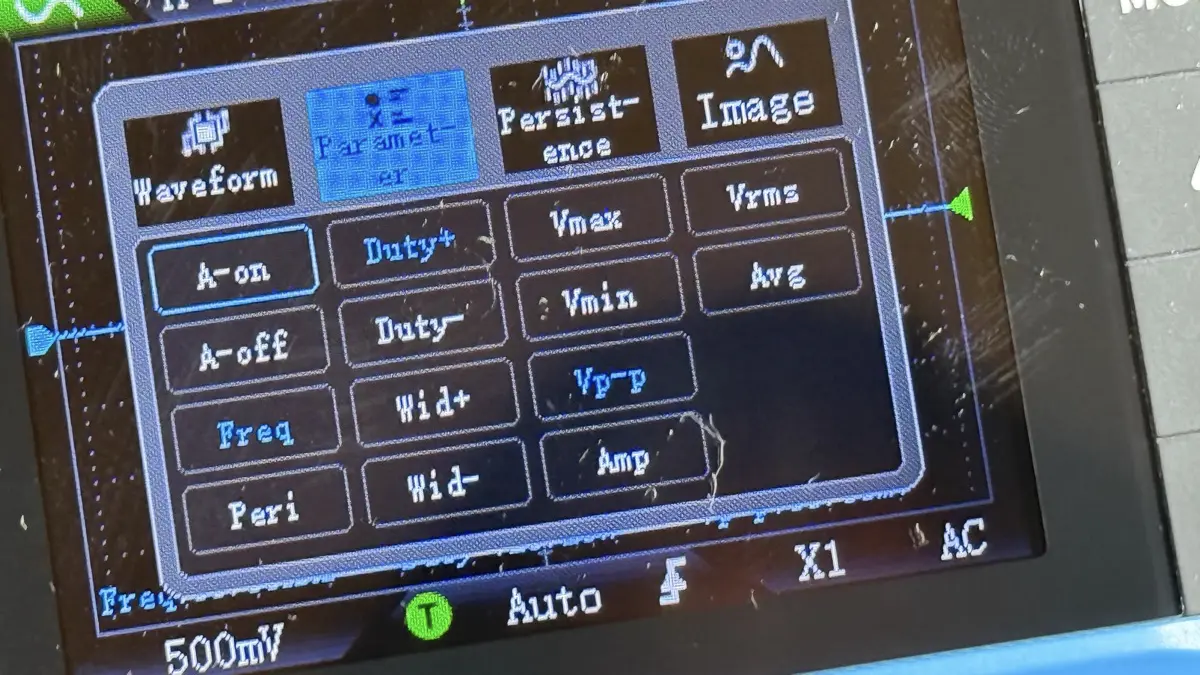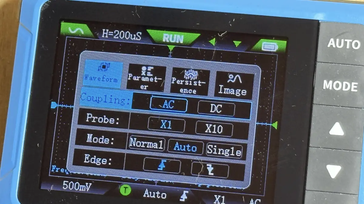 オシロスコープ画面の設定はMODEを押してクリクリしてプッシュしたり矢印ボタンで移動したりと、かなり操作感が悪いです。