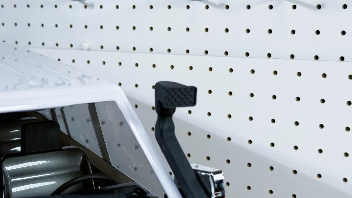 これを引っ張って横に90°回転させるとボディを開くことが可能になります。※リアのヒンジで固定されているので、カパッと蓋が開くようになり、バッテリーなどの装着が楽