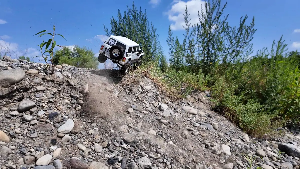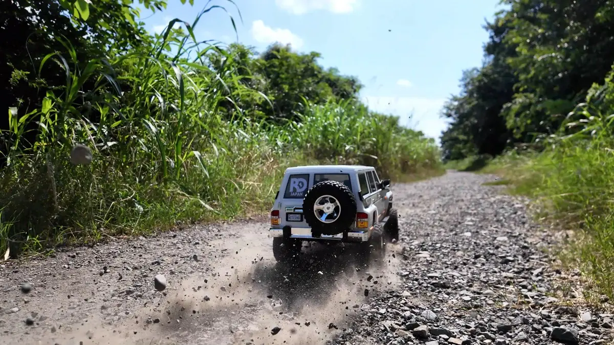 もちろん車体が大きく重いので、バカクソ速いワケではありませんが、普段3Sの1/10クローラーで遊ぶ事が多い僕にとっては、この速度感とトルク感はホントに楽しいものでした。