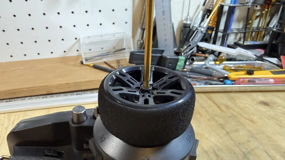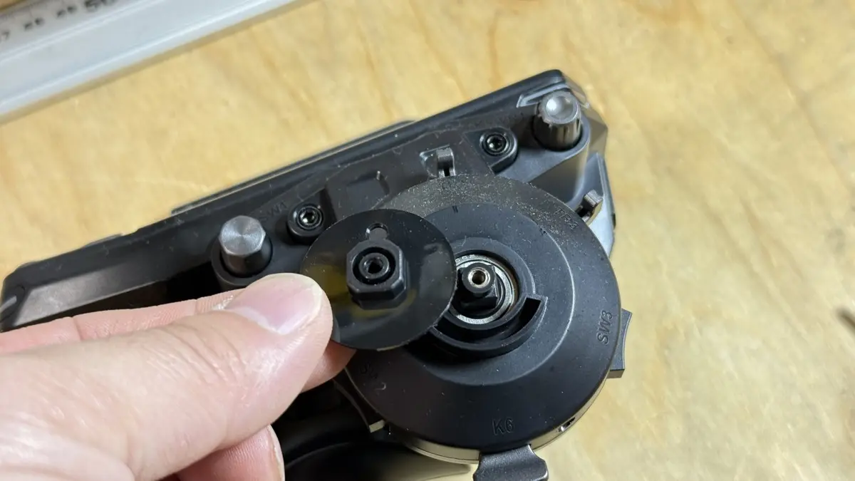 そしたら奥にビアリングが見えますので、そこに製品付属のスペーサーを入れます。