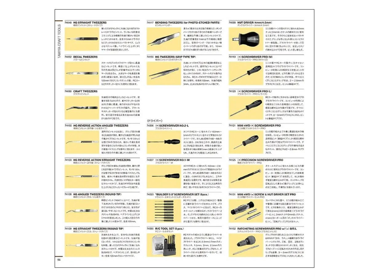 模型作りや工作に欠かせないクラフトツールをベーシックなビギナー向けからベテラン向けまで幅広く掲載