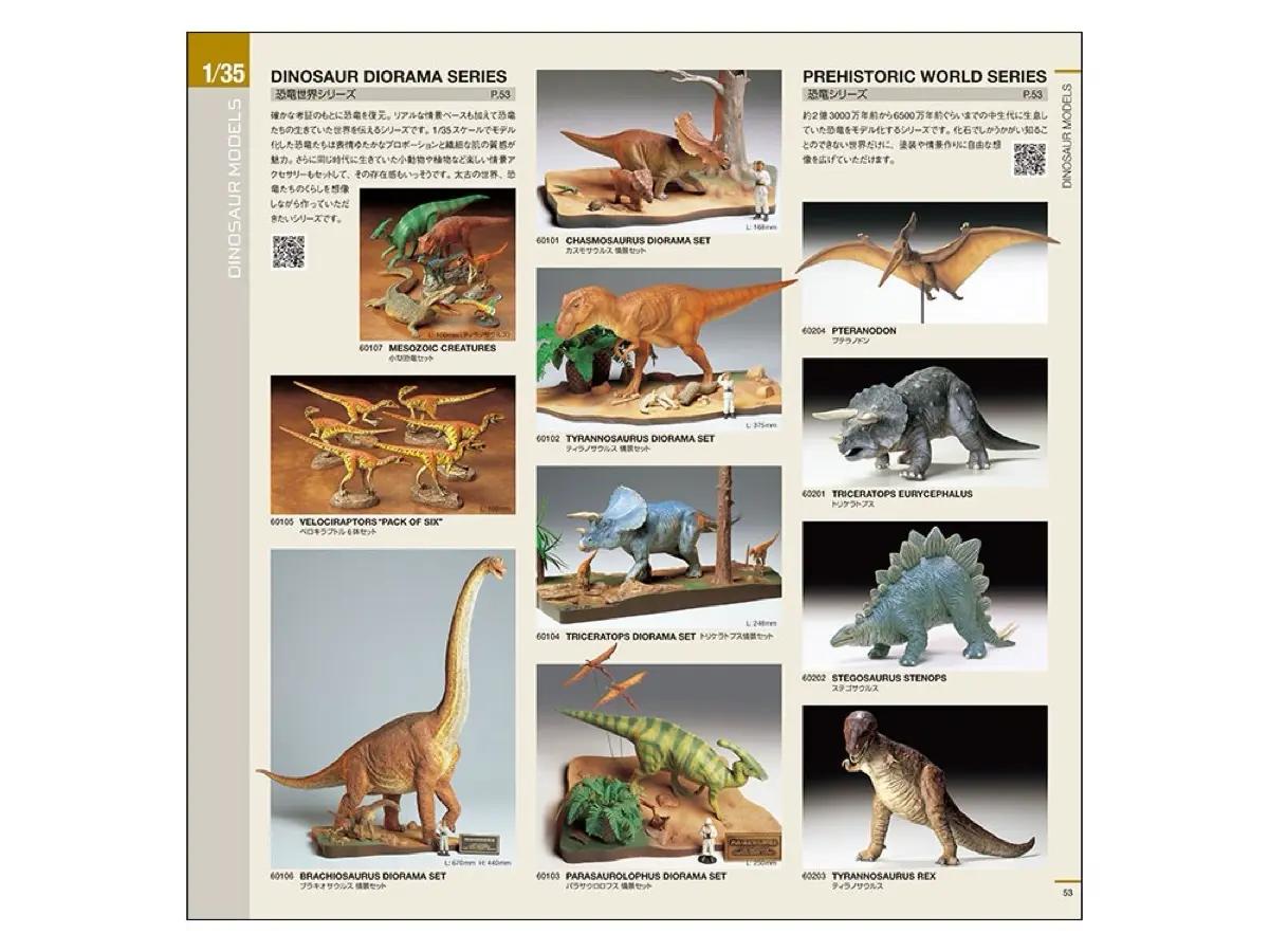約2億3000万年から6500万年前に生きた恐竜を1/35サイズでモデル化