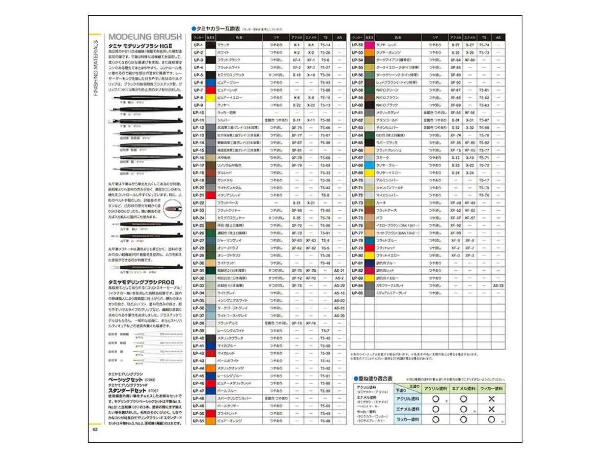 タミヤカラーの互換表を掲載(ラッカー塗料をベースに、各色に対応するアクリル塗料やスプレー塗料が一目でわかる)
