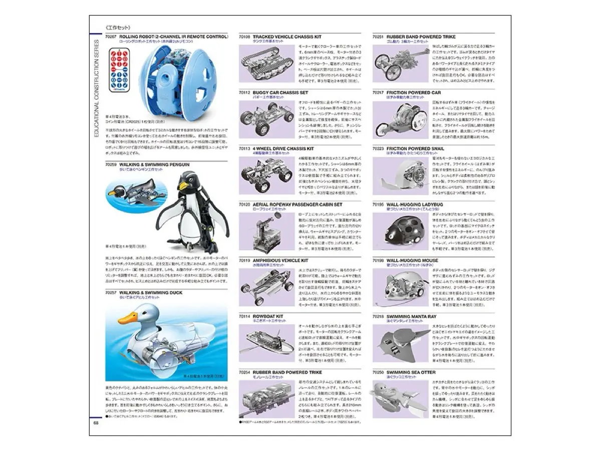 カタログ表紙には、タミヤを代表する多彩なジャンルの製品が一堂に集結してます。