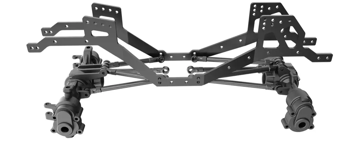 シャーシはいわゆるLCG 低重心シャーシレールを採用したもので、これはスモールスケールクローラー市場では割と珍しいレール構造です。